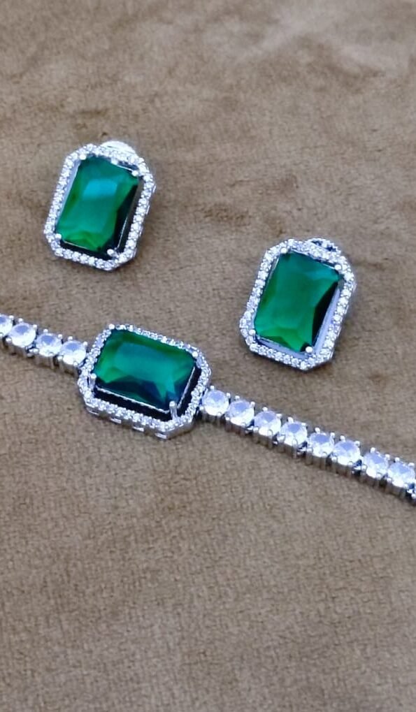 American Diamond Silver-Plated Studded Bracelet With Earrings