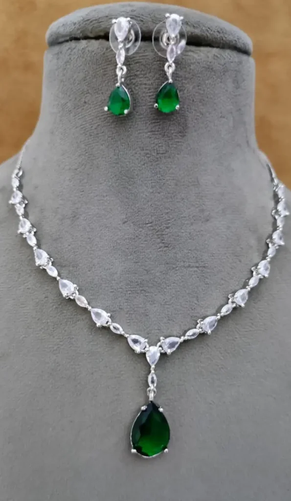 American Diamond Drop Pendant Necklace Set with Drop Earrings