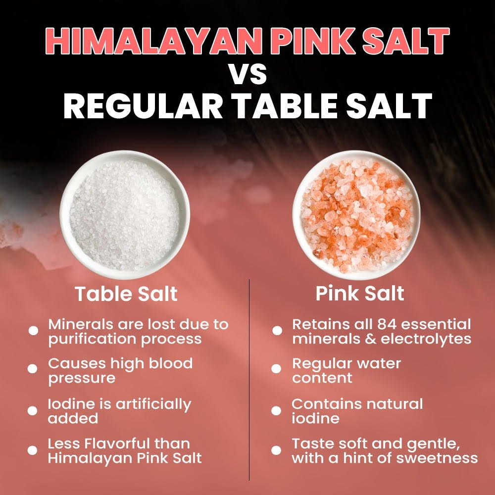 - INGREDIENTS AND MINERALS: Himalayan pink salt ranges in color from sheer white to varying shades of pink which indicates a beneficial amount of 84 trace elements & iron.